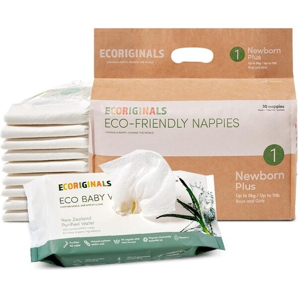 - 1 Pack of 28 x 90%+ biodegradable Newborn Plus nappies