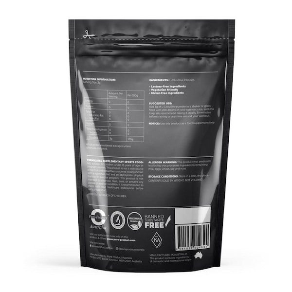 Overall, L-Citrulline is a safe and effective supplement that can provide a range of benefits for physical performance, muscle recovery, and cardiovascular health. As mentioned, this product is pure L-Citrulline with no added ingredients or substances.