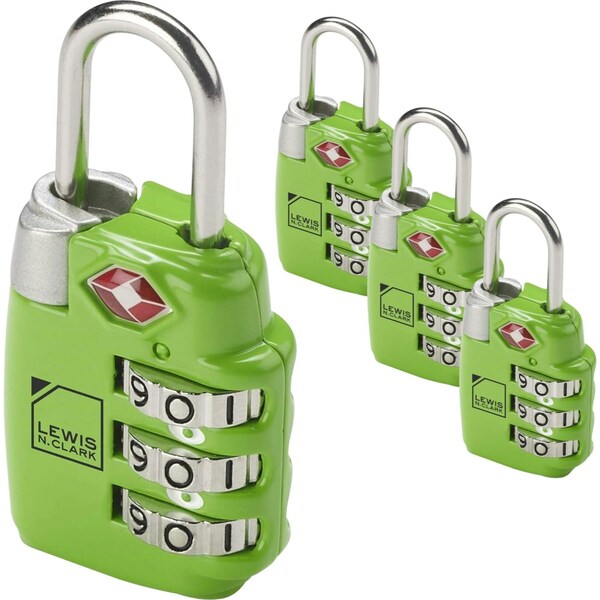 Elevate your travel security with the Lewis N Clark TSA Approved Combination Lock Travel Luggage Padlock in vibrant Green. This listing is for four padlocks, offering robust protection for your belongings.