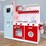 -Well-equipped wooden kitchen set with a microwave, an oven and a fridge