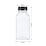 Square Plastic Juice Bottles with 250 milliliters of capacity are recyclable, clear, and disposable. They have black caps that prevent tampering.
