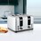 The Westinghouse 4 Slice Stainless Steel Toaster offers efficient toasting with its wide self-centering slots, 7 stage browning control, and variable browning control. Its high lift levers allow for easy access to small pieces of toast, while the dual zone control allows for different types of bread to be toasted to perfection. The reheat, defrost and cancel functions offer convenience, and stainless steel body and dual crumb collector trays make for a durable, stylish finish.
