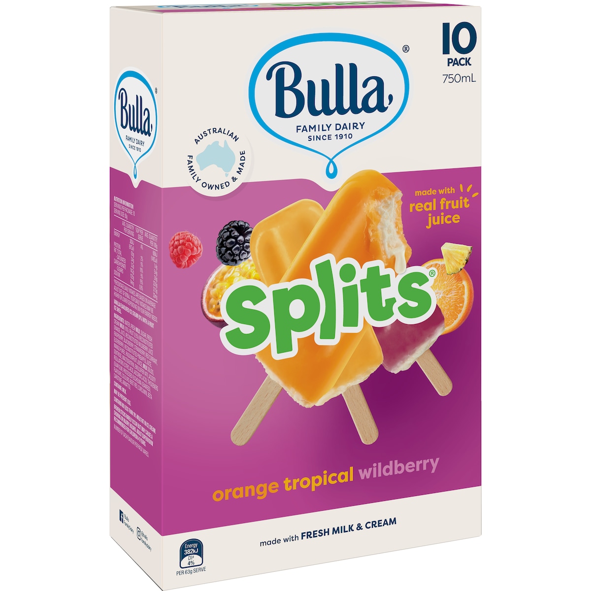 You can't fake the taste of our Bulla Splits. It's the taste of real ice cream, coated in a refreshing icy pop shell, made with real fruit juice. It all comes back to doing things the right way. Australian family owned and made.