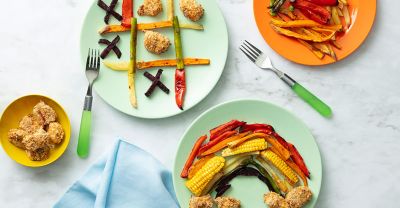 Kids can arrange chips and nuggets into colourful creations on their plates! Play a game of noughts and crosses, or simply create a delicious picture. Make sure kids have all the colours to create their rainbow artworks.