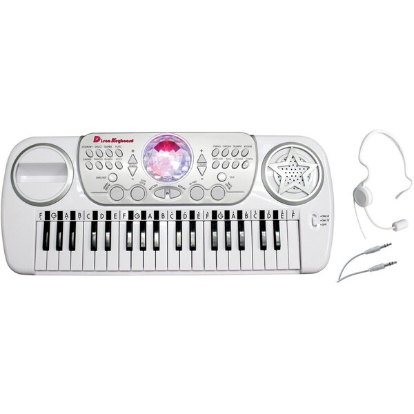 - Disco ball with flashing lights. 37-Key electronic keyboard with 8 instruments selectable