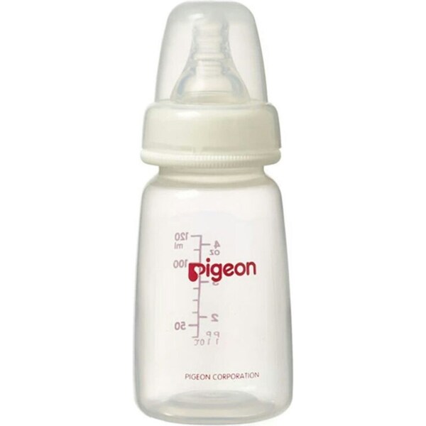Pigeon PP 120ml Feeding Bottle w/Slim Neck Size S Round Hole 0m+ encourages baby to use natural sucking pattern - the peristaltic movement.