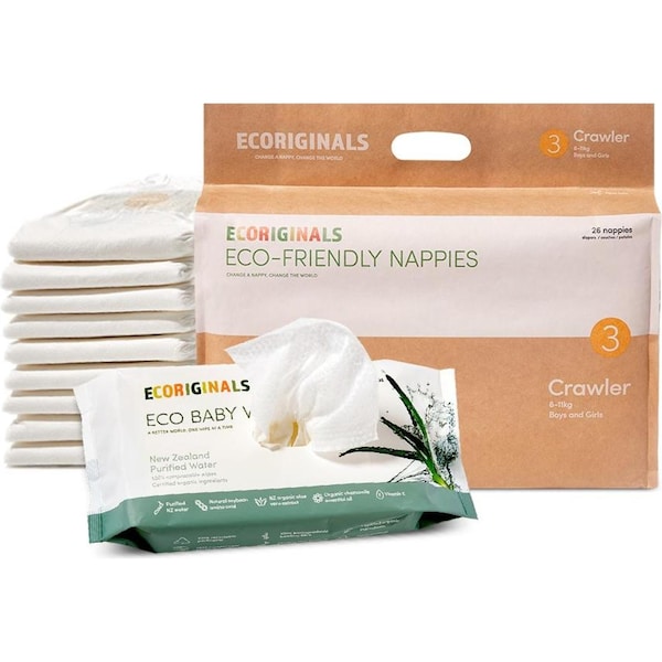 - 1 Pack of 24 x 90%+ biodegradable Crawler nappies