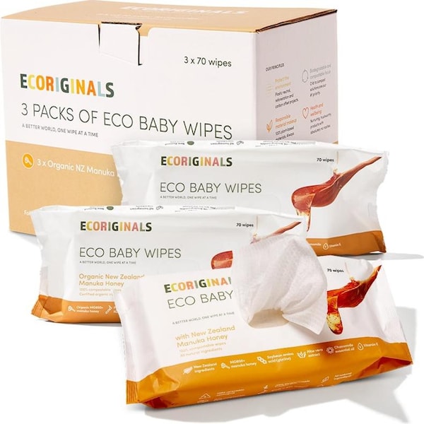 • 3 packs of 70 luxurious natural wipes made in New Zealand with Organic Manuka Honey