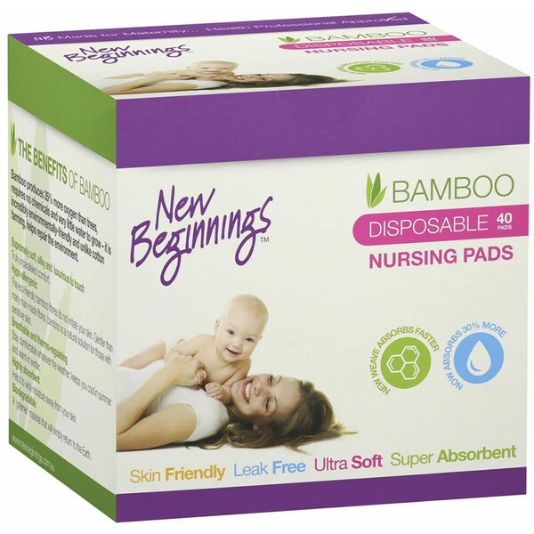 Made from extra soft, natural bamboo lining and a highly absorbent core, the New Beginnings nursing pads are designed to channel and evenly disperse any leaked milk.