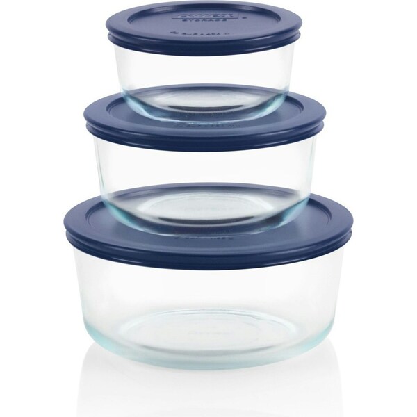 The Pyrex Simply Store Round Storage Dish Set is perfect for keeping all sorts of ingredients and meals fresh. In three versatile sizes, these round glass dishes and lids make it easy to store food or pack meals to go. Durable, pure Pyrex glass stands up to the microwave and dishwasher use after use, and because it’s stain and odour resistant, it stays clean and preserves your food’s fresh flavours.