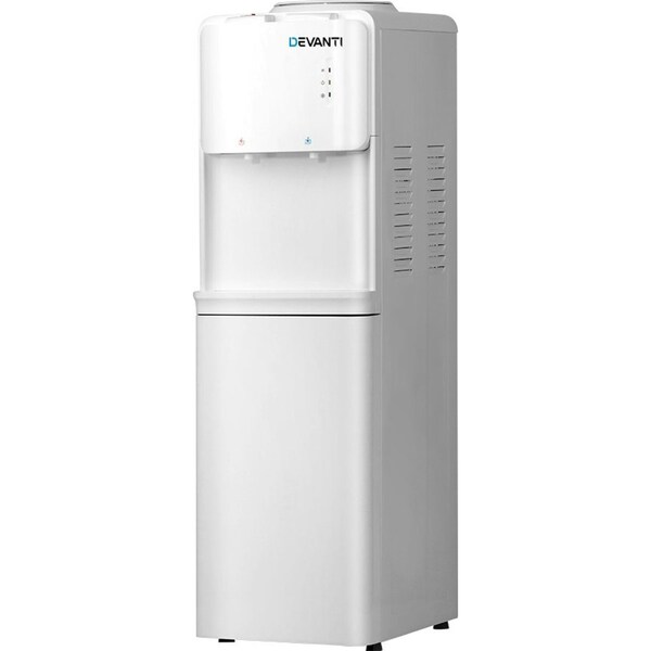 Have access to cleaner and purer water at all times with the Devanti Water Cooler. Designed to work with most bottled water or water filter containers, the cooler features an electronic refrigeration system that works quietly and reliably. It comes with a detachable water guide plate that can cater to either water containers. The cooler has LED indicators for easy operation and dual taps for hot and cold water options. The tray height can also be adjusted to suit your use. A removable drip tray also allows for easy cleaning. For added safety, the dispenser has overheating, over-current, anti-dry and electric-shock protection and a child-lock to prevent children from tampering with the unit. Not least, the dispenser has a large storage cabinet to store any accessories or drinking essentials.