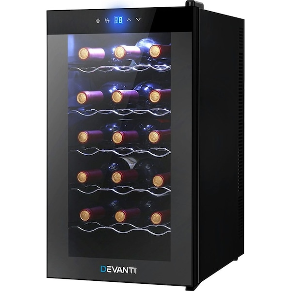 Need a good and reliable wine cooler? Look no further than our Devanti Wine Cooler. Utilising the latest high precision thermoelectric cooling technology, our wine cooler ensures your favourite vintages are kept at their prescribed temperatures with its circulated cool air. The touch control panel makes for easy temperature adjustments and the built-in interior LEDs help you to see your wines in the best light. The stylish and compact design stores up to 18 bottles of wine in a neat and tidy shelving system.