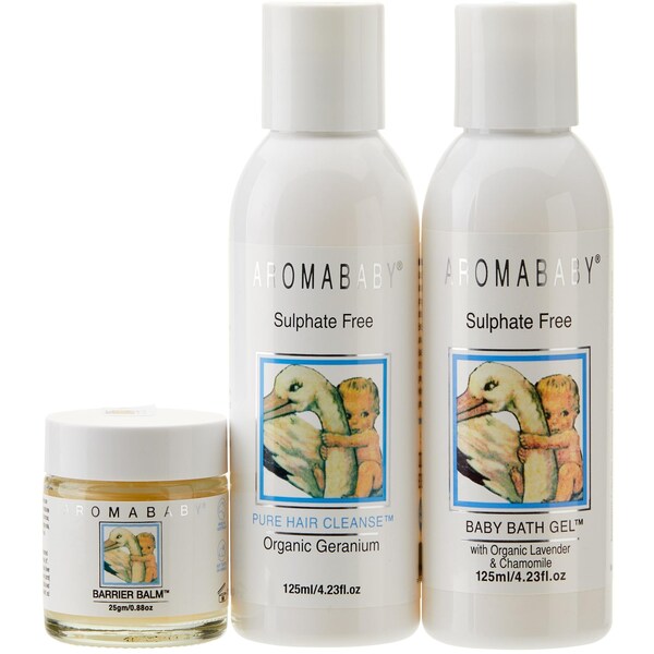 Bath Gel 125ml - Aqua (purified water), Sodium Laurylglucosides Hydroxypropylsulfonate, Sodium Lauroyl Sarcosinate, Xanthan gum, D-alpha Tocopherol (natural vitamin e), Helianthus annuus (sunflower) seed oil, Lavandula angustifolia (lavender) essential oil, Matricaria recutita (German chamomile) essential oil, Citrus grandis (grapefruit) seed extract, Benzyl Alcohol, Dehydroacetic acid. Organic Pure Hair Cleanse 125ml - Purified water, Cocamidopropyl Betaine, Sodium Laurylglucosides Hydroxpropylsulfonate, Glycerin, Citrus sinensis (Orange) oil, Pelargonium graveolens (Geranium) oil, Xanthan gum, Carrageenan, Lactic acid, Benzyl Alcohol, Dehydroacetic acid. *Organic Barrier Balm 25g - Prunus dulcis (sweet almond) oil, Cera alba (unbleached beeswax), Oenothera biennis (evening primrose) oil, D-alpha Tocopherol (natural vitamin e), Calendula officinalis (calendula) flower oil, Helianthus annuus (sunflower) seed oil, Daucas carota sativa (carrot) root extract, Rosa damascena (rose) oil, Simmondsia chinensis (jojoba) seed oil, Citrus aurantium (neroli), Matricaria recutita (German chamomile), and Anthemis nobiis (Roman chamomile) essential oils. *Organic