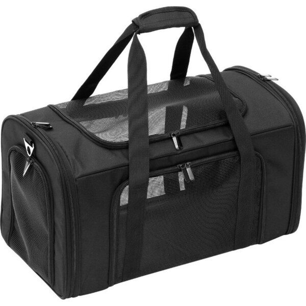 Take your pet on adventures with you with our Paws & Claws Foldable Pet Carrier! Ideal for small breeds of dogs, cats, and small animals, our design is made of durable, water resistant material and features mesh windows for easy ventilation and visibility. Designed with comfort and security in mind, the Pet Carrier includes a removable soft sherpa mat and sturdy handles to transport your pet safely.
