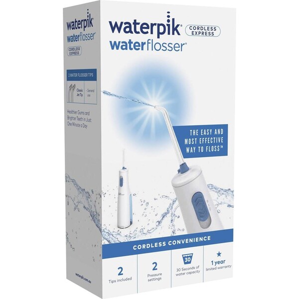 The Cordless Express dual water pressure control system allows you to personalise your water pressure intensity. The Cordless Express includes 3 AA batteries and an easy-to-fill reservoir.