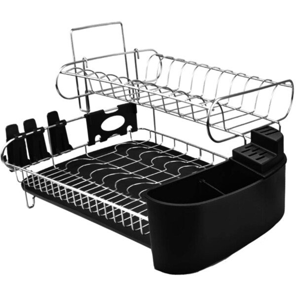 Dry your dishes on your 2-Tier dish rack. Pure luxury. Not only that there are attachments on the side for cutlery and chopping boards. Great for those with smaller kitchens.
