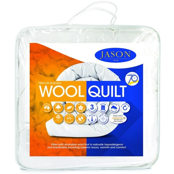 The Jason Australian wool quilt provides comfort and superior warmth. Made with the finest cotton percale cover and filled with washable Australian wool, it is perfect for the cooler months of the year.
