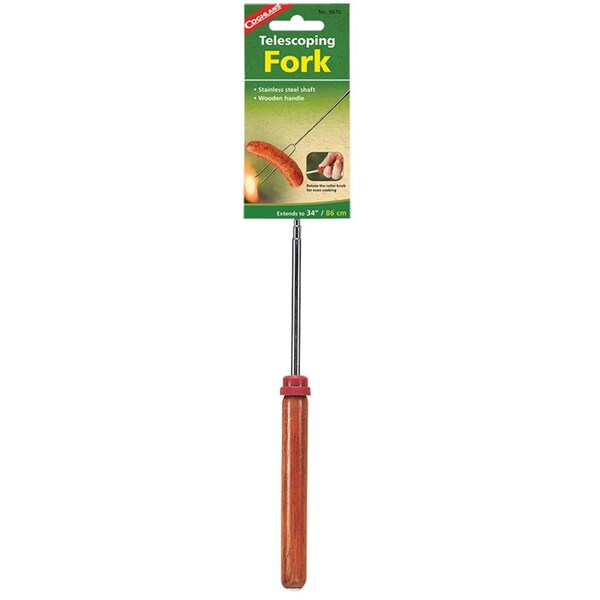 Cooking food over an open fire is a time-honored tradition, and Coghlan’s Telescopic Fork makes outdoor cooking fun and easy. This handy device extends for compact storage when not in use, but still allow for enough distance from a fire when in use. Features a thumb roller on top of the sturdy wooden handle that rotates the prongs of the fork to evenly cook food like hot dogs or marshmallows. The durable design with chrome-plated shaft provides for rust resistance. Ideal for cooking food over an open fire when car camping, RVing, hiking, at the cabin or even at home.