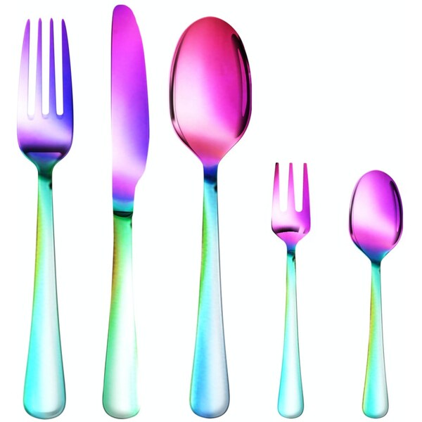 Do you like forks? Do you like knives? Do you like spoons? If so your new cutlery set will make you happy. Grab your rainbow colour cutlery set now.