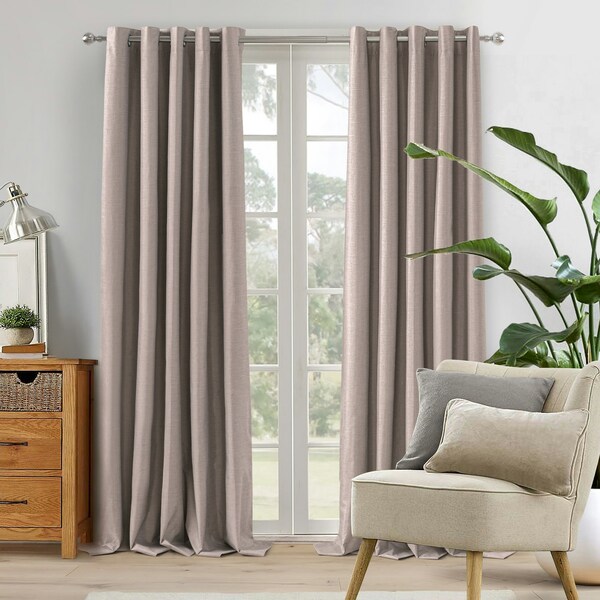 Treat your windows and sliding doors to the warm, natural look of linen with these 100% blockout faux linen eyelet curtains from Sherwood. Our curtains give you complete control of light coming in and privacy, as well as a layer of noise and temperature insulation for your windows. Naturally, drift off to sleep and wake up on your own schedule.