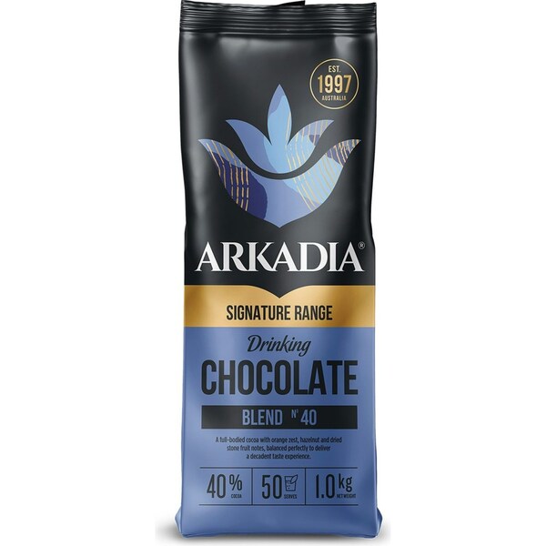 Arkadia Drinking Chocolate (40% Cocoa) is crafted using 100% Ivory Coast cocoa powder to produce a full-bodied, dark and earthy drinking chocolate. Subtle orange zest, hazelnut and dried stone fruits balance perfectly in this better sweet drinking chocolate blend, resulting in a rich and memorable experience