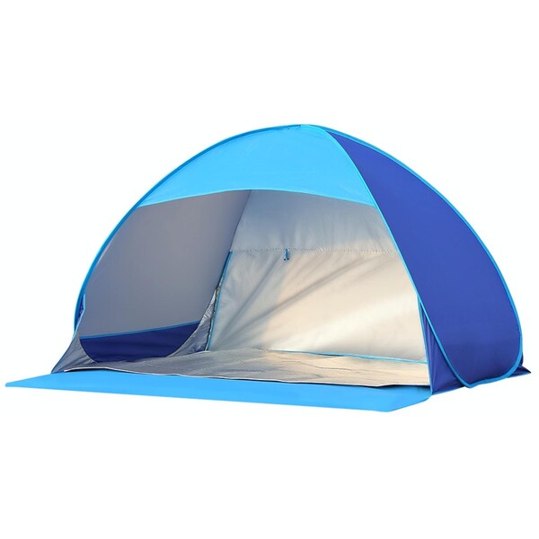 Waste lots of time in set up a tent rather than trip. Our Pop Up Tent solves this problem setup in seconds no assembly required. Ample space suitable for family trip just enjoy beautiful beach scenery with your kids. Adopt special silver coated fabric effective in UV protection. Features interwoven mesh breathable and upscale appearance. In addition 8 ground stakes ensure tent stable and firm withstand breezy condition perfectly. Better still a carry bag for easy carrying and store taking everywhere your want such as park beach and etc. Enjoy your trip time with our tent.