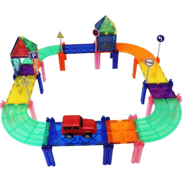 Magnescape Magnetic Tiles 80 Piece Race Car Track Building Block Educational Toy Set