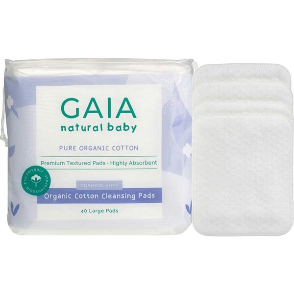 The cushion soft, GAIA Natural Baby Organic Cotton Pads are perfect for the gentle care of the face, skin, body & nappy area. A must have product for every change table, these pads are extra-large and dual sided and the quilted edges ensure that no lint or cotton fibers are left behind.