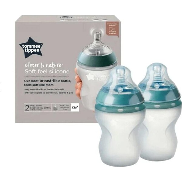 2pc Tommee Tippee 260ml Silicone Baby Bottles w/Travel Lids 0m+