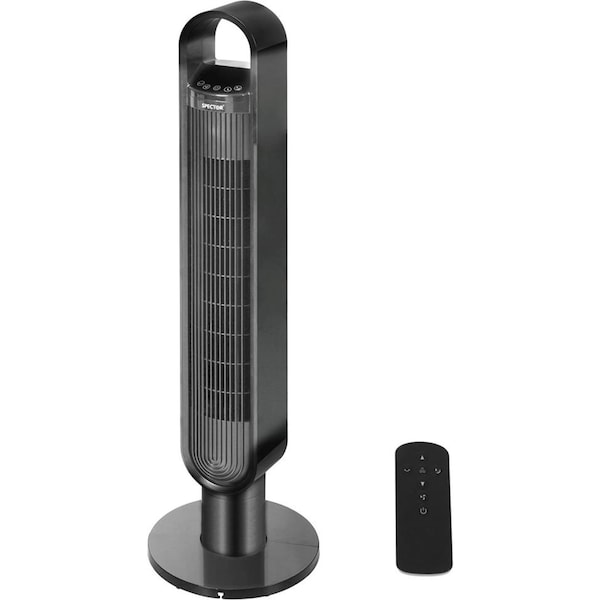 You have a couch and coffee table but something is missing. You need a tangential tower fan for when things get hot. Pick from different settings. Use the remote or control panel.