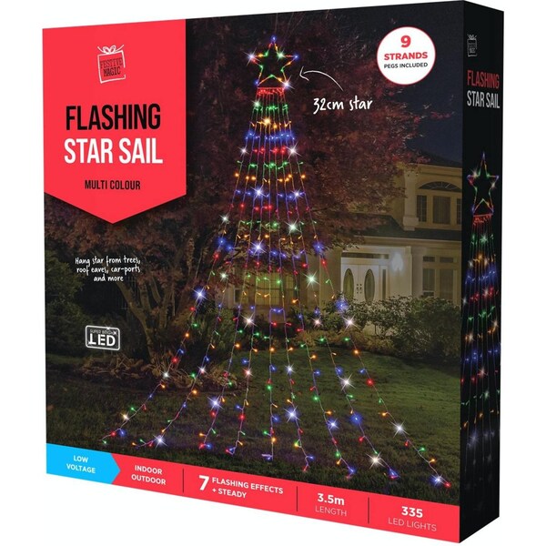 Deck out your home with this beautiful multi-colour star cascade light set! Add a touch of class with these stars that emanate a lights with a steady glow. Featuring 335 LED lights, it's easy to drape on hedges, fences or on mantles and staircases inside the home. A 10m lead cable is included in the box. These lights have SAA approval and ERAC registration, so they're safe for indoor and outdoor use and you will have peace of mind knowing they're made of the right stuff. In addition to a hassle-free set-up, they also comes with an extra low voltage transformer that helps regulate power while your light is being used. This product is in stock and ready for fast shipping from our Australian warehouse. You won't find a better price!