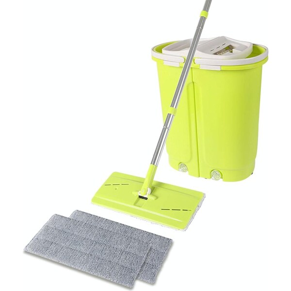 Tired of washing traditional mop after mopping? Our Mop and Bucket Set releases your from heavy chores say goodbye to hand wash. 100% Microfibre mopping head provide a superior cleaning process. Hook-and-loop flat mop head save you from intertwined mop head irritations. Dry mopping traps dust particles and grime; Wet mopping absorbs liquid quickly. 360??Rotatable head cleans corner or under furniture area effectively. Bucket are divided into two sides for drying and washing. It can also be detachable for easy cleaning. Stainless steel wringer features a heavy-duty and tough performance. Fast spin action for effortless drying. Quality details such as drain valve retractable handle and lifting handle make it better than others. Clean dust hair or dirt easier by today!