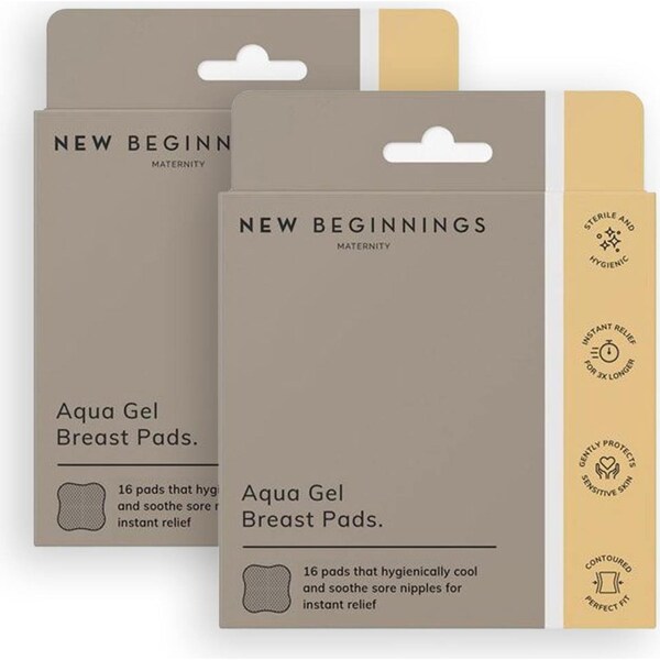 16pc New Beginnings Maternity Aqua Gel Breast Pads provide the ideal cooling environment for your sore or cracked nipples as a result of breastfeeding. Cooling the affected area provides instant relief and gently protects your nipples so you can get back to breastfeeding sooner.