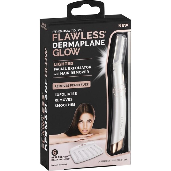 Finishing Touch Flawless Dermaplane Glow instantly and painlessly exfoliates dry, dead skin. Remove peach fuzz and unwanted hair to reveal smooth, more radiant and younger looking skin.