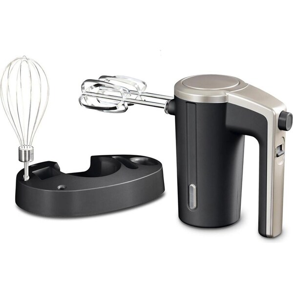 - Includes whisk and beater attachment