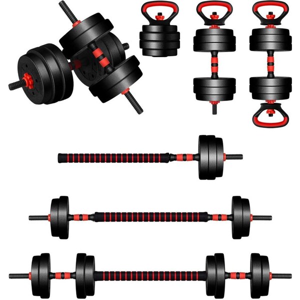 While dumbbells or barbell allow for heavier weights, which helps you achieve a bulky mass of muscle, kettlebell brings you an overall toning of your muscles. Our dumbbell can be easily converted to a two-handle kettlebell by combining with ultra-thick rubber handles and safety lock nuts. Including a kettlebell base with thread rod, it's also facile if you only want to do exercise with a single kettlebell.