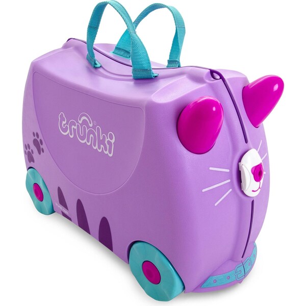 Trunki allows kids to pack, carry and ride on their suitcase in a safe and fun way. Trunki ride on luggage gives you a chance to relax, while the kids can entertain themselves with its useful, safe and sturdy design.Hand luggage approved with a generous 18L capacity, Trunki is strong and durable weighing in at only 1.7kg. Soft rubber rims prevent little fingers from being caught and a wide, stable wheel base ensures safe riding around airport terminals. When tiredness sets in, a shoulder strap allows adults to carry or pull Trunki with kids in tow