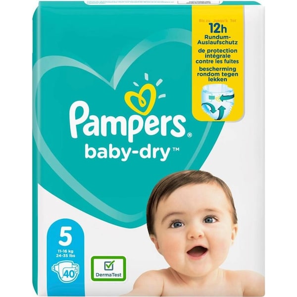 40x Pampers Size 5 Baby Dry Nappies 11-16kg