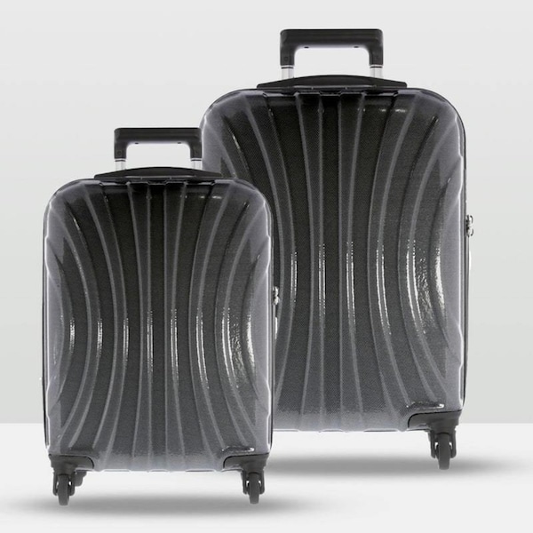 Crafted in a sleek silhouette and unique curve design to maximise strength and lightness, the Cobb & Co Adelaide Hardside Spinner 2-Piece Luggage Set Black (56cm/75cm) makes the perfect travel companion! Utilising revolutionary and durable polycarbonate material, these suitcases feature secure interior zip compartments and elastic cross ribbons as well as a stunning luminescent shimmer on the shell for added style. Available in Black, and Grey.