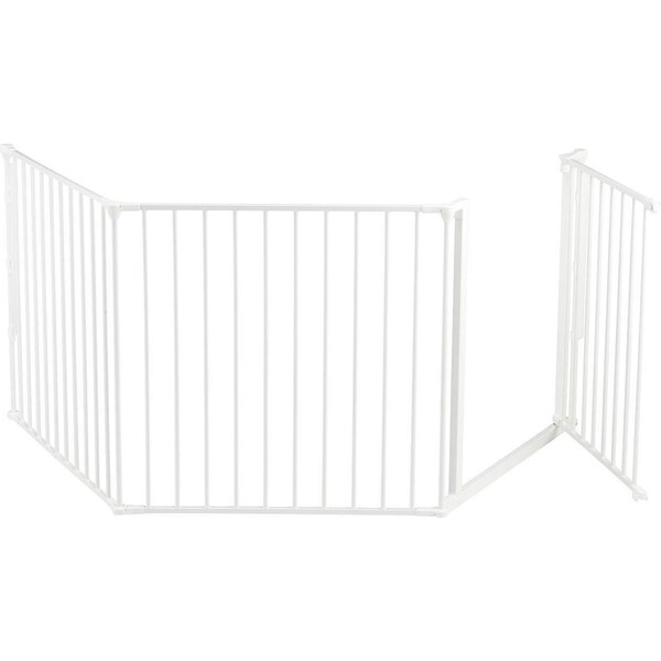 This modular baby safety system in large is flexible and adjustable so you can secure your fireplace, kitchen, balcony doors or pet area. You can create virtually any shape you need. Choose a colour (black or white) and add other individual components (extra panels or gates) if you need to . You can even have two gates. The mounting brackets are fully flexible and can be fixed straight or angled or a combination of both. The Large set consists of 1 x gate 72cm wide, 2 x fence panels 72cm wide, and 1 x set of mounting brackets