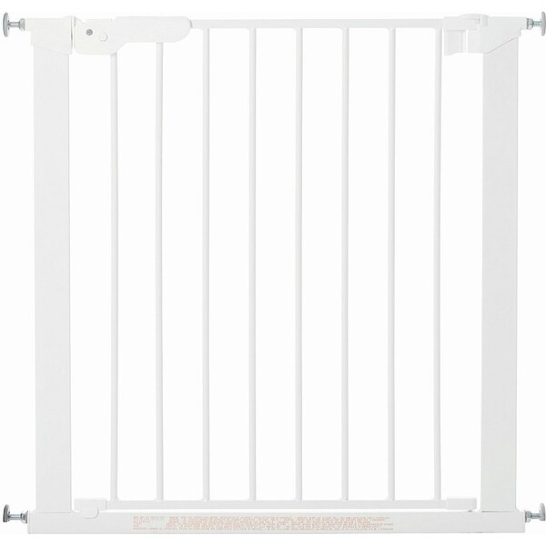 This true pressure-fitted gate requires no drilling for installation. It does not require any wall cups installed unless the correct pressure cannot be obtained to keep the gate safe or if more than two extensions have been added. The pressure gate option is very popular as you can avoid drilling into the walls or door frames (beware that other pressure gates require wall cups at all times which in turn are installed with screws). The gate door opens in both directions and has a cross bar at floor level which may pose a trip hazard and care needs to be taken when installing the gate near stairs or steps. The gate can be fitted with up to six extensions (six extra bars) distributed evenly and suits openings 73.5 cm to 119.3 cm. The extension bars are sold separately.