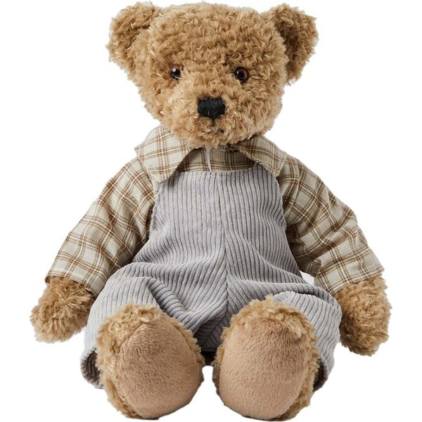 Chester is wise and always gives the best advice! Often referred to as “Papa” bear, he wears a grey corduroy overalls and woven check shirt. Chester is made from premium quality plush faux fur fabric.