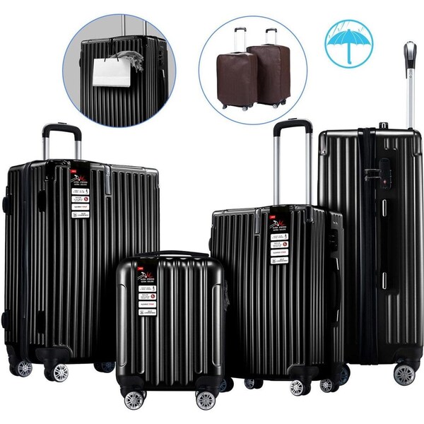 Packing everything in this 4-piece carry-on luggage set can make your next family getaway as easy as a breeze. Four stylish suitcases are sized 16", 20", 24", and 28", each of which contains a strong PC and ABS shell, a top and side handle, an aluminium top handle, a retractable trolley system, and four 360-degree dual spinner wheels. The tie-down straps inside the suitcases ensure the clothing is securely in place, while the mesh pockets are perfect for toiletries and beauty accessories. The travel suitcase allows for easy organisation of your belongings. Plus, the luggage trolley set features protective round corners and secure combination locks. It is solid, firm, and durable for years of travel and trips.