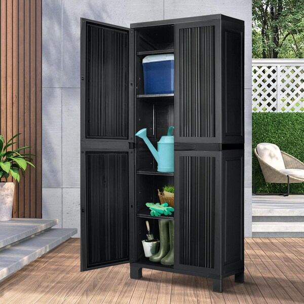 One can never have too much of storage space. And our Livsip Outdoor Storage Cabinet is just perfect to provide ample storage for all your gardening paraphernalia and then some more. Made of maintenance-free plastic, the storage cabinet is designed to withstand the weather elements. The cabinet features with adjustable and removable shelves that allow you to store tools, cleaning supplies, and other materials and ensure that items are clean and neat. What's more, it features a pegboard divider with 6 hooks to hook up your hoses, ropes and similar items. Better still, the door is lockable, which enhance the security and safety. Perfect to use in areas like a covered patio and a garage.