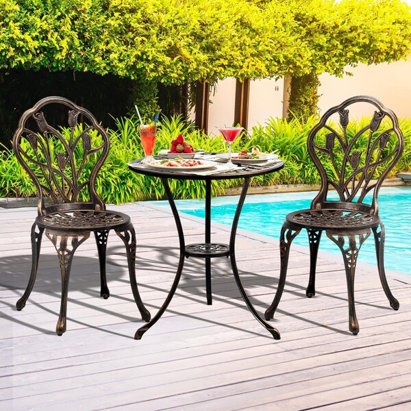 Made from powdered-coated cast aluminium, the bistro set replicates the construction materials of the era perfectly. The flawless smooth finishing and SGS-tested paintwork further add to the immaculate quality with vintage appeal. Naturally, the bistro set is designed to be weatherproof and resistant to corrosion with constant use outdoors. And let's not stop there. You can also use the set indoors to create a unique setting and a definite conversational piece.