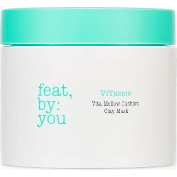 FEAT BY YOU ViTassie Mellow Cushion Clay Mask is a purifying, wash-off clay mask pack formulated with Bentonite and Kaolin that detoxifies and clears out clogged pores. Apricot seed is added for gentle, physical exfoliation to lift and melt away dead skin cells or rough patches. This mask is enriched with Kakadu plum extract to give the skin brightening effects, and even out skin tone for a revitalized, silky finish. The smooth, bouncy texture of the clay mask glides easily on the skin, without tugging or irritating; when it is dry, it leaves a soft clay-like layer without tightening skin or stripping away moisture.