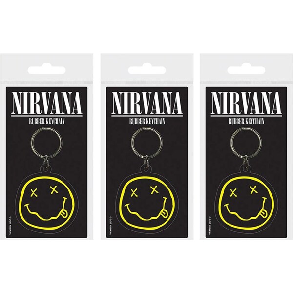 3PK Nirvana Smiley Face Logo Themed 90's Rock Music Rubber Keyring