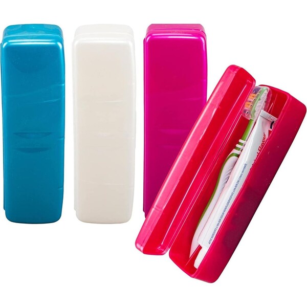 - 4 x Protective Case for Toothbrush and Toothpaste Pearl Colours- Pink, White, Red, Blue 19.5cm x 5.5cm