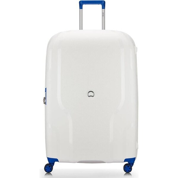 The Delsey Paris Clavel Valise Trolley Extendable 4DR Luggage Suitcase White/Blue invites travellers to explore the world with its ultra-lightweight and resilient 100% polypropylene construction, which is resistant to cracks and damage. A secure TSA combination lock and sturdy zipper ensure both security and convenient access to your belongings. Its ergonomic telescopic handle and integrated side handle make it effortlessly portable, catering to frequent travellers and explorers seeking reliable luggage options. Available in 3 sizes.