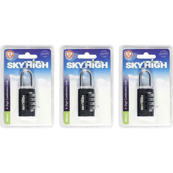 3 x Sky High 80Mm 4 Digit Luggage Combination Lock Black